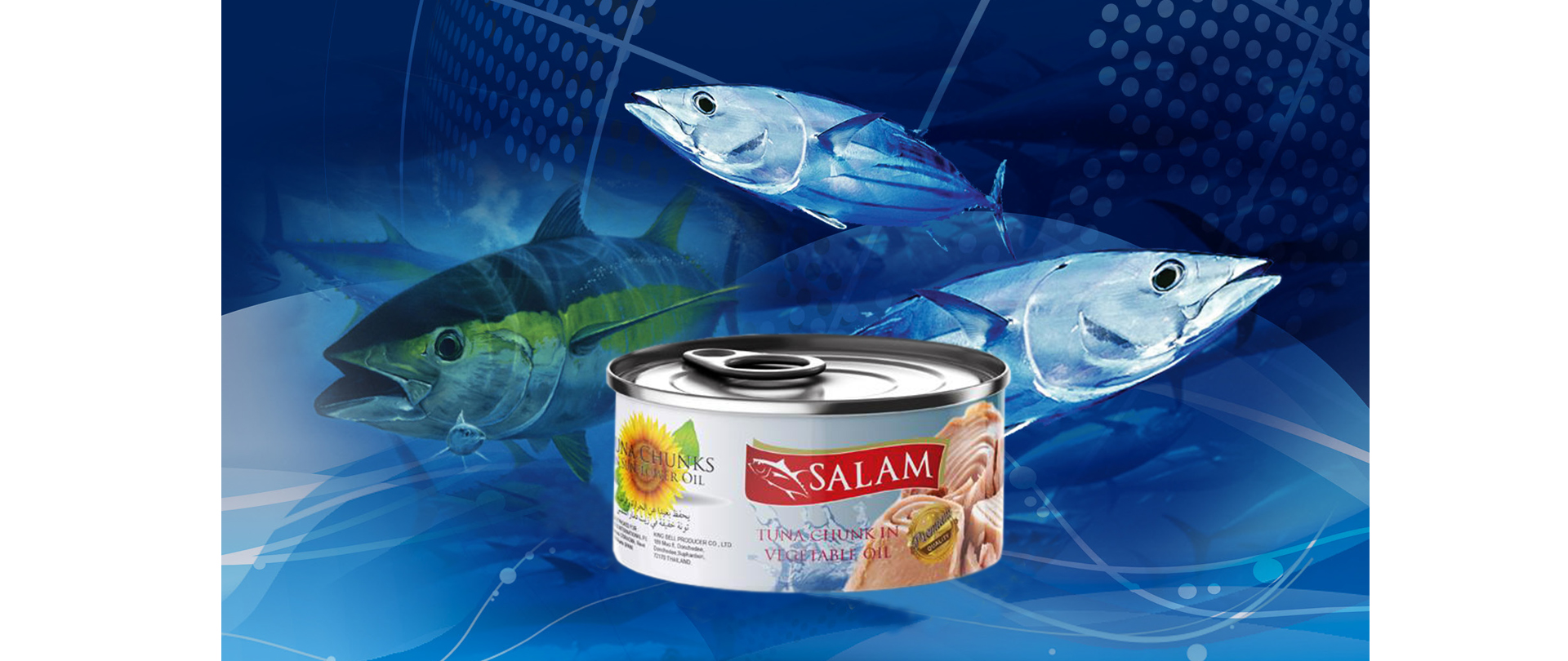 KING BELL PRODUCER CO., LTD. Produces guaranteed excellent quality tuna using the most advanced manufacturing technologies in our processing facilities. From the sea to the can, we seek high quality raw material and pay superior products to serve the world’s market. Brand "SALAM"